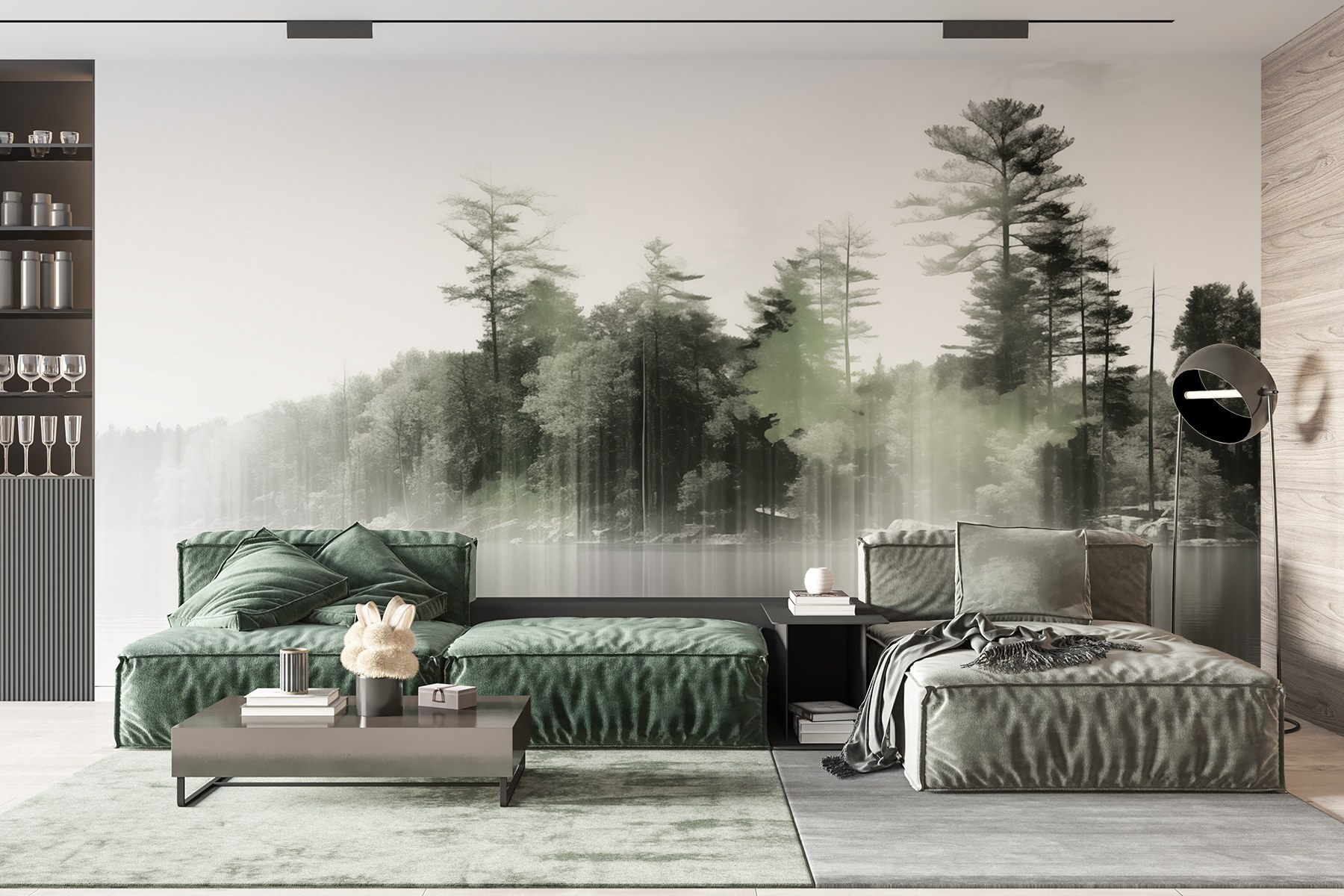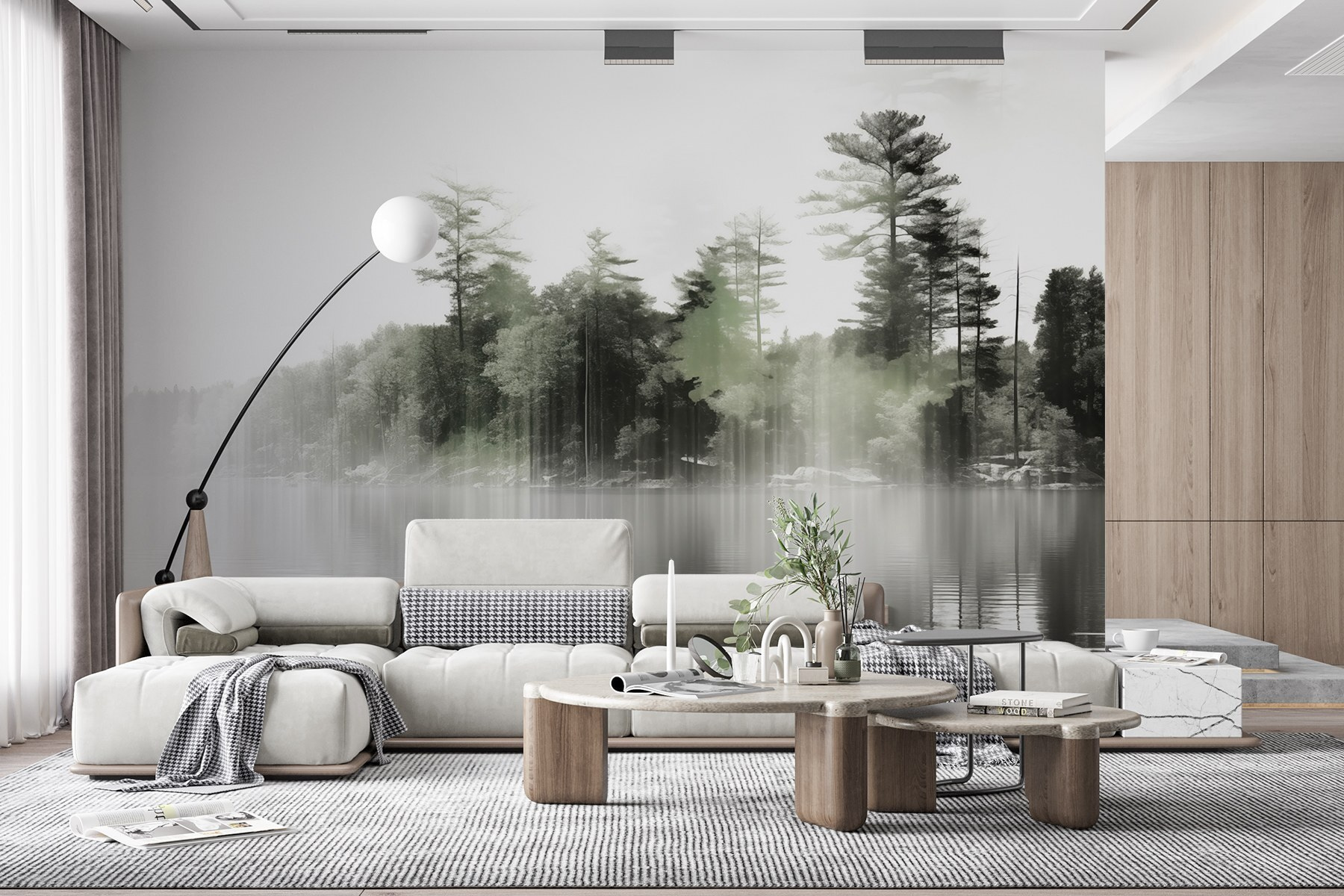Trasformare una parete con un murale come questo può sembrare di entrare in un rifugio tranquillo. Immaginate il morbido sussurro della nebbia che si stende su acque serene, incorniciato da alti alberi che fanno da guardia. È un invito alla calma, quasi come una pigra domenica mattina passata a sorseggiare un caffè guardando la natura che si risveglia. Quando la luce filtra, c’è una qualità eterea che rende ogni sguardo una piccola fuga. È perfetto per creare un accogliente angolo di lettura o semplicemente un luogo dove fermarsi a riflettere. Appendetelo e lasciate che la bellezza della quieta eleganza della natura investa il vostro spazio, stimolando conversazioni e sogni ad occhi aperti.